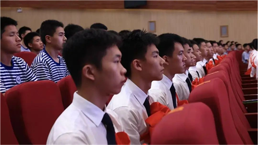 “从此刻起,这身‘浪花白’就是我们的战袍!”来自海航2022级2班的陈绍骞作为学生代表,他满怀感恩,感谢海军和学校,感谢恩师与同学。陈绍骞的眼中闪烁着坚定的光芒,他庄严承诺,将以忠诚铸魂、勇敢砺剑、弘毅坚守、奋进超越。话音刚落,他抬手敬礼,眼神如鹰隼般锐利:“为战而生,向战而行!深蓝有我,使命必达!我们将‘浪花白’的军装穿成最美的铠甲,在未来的海空战场上当先锋、做尖刀!”录取学员家长代表汪洋走上台前,她望着眼前这群即将展翅的 “雏鹰”,眼眶微红:“看着孩子们从懵懂少年长成有志青年,我们既骄傲又不舍。”她向同学们表示祝贺,也向军方领导、校领导及教师们的辛勤培育表示衷心感谢。她寄语这群即将踏上新征程的飞行学员,要肩负起守护祖国海天的使命,在蔚蓝的天空中展翅翱翔,在深蓝的航道上破浪前行,把父母的牵挂变成你勇前行的力量,让家乡的期盼化作守护海疆的决心。