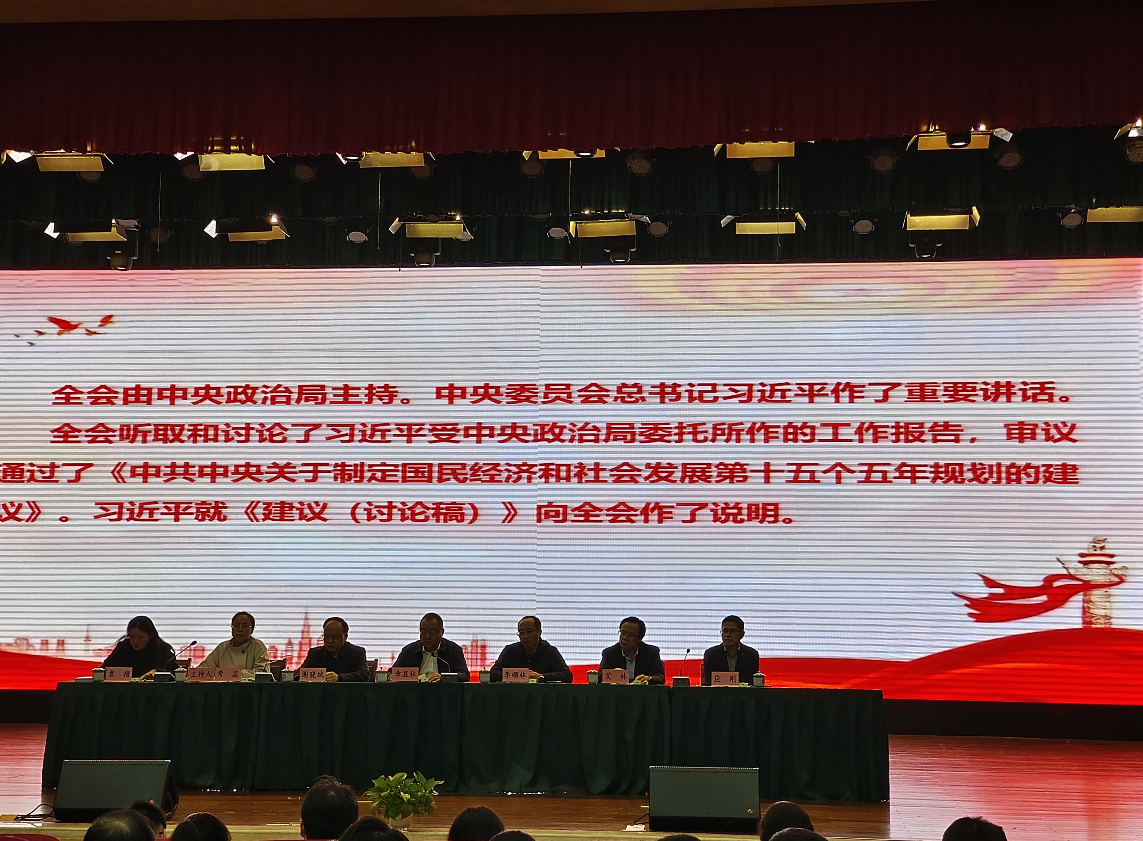 活动第二阶段,支部全体党员移步文益堂,共同聆听学校党委书记章显林同志主讲的“学习贯彻党的二十届四中全会精神”专题党课。