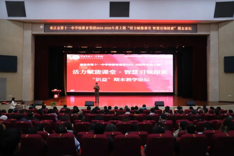 1月30日上午,重庆市第十一中学校教育集团2025-2026学年上期“活力赋能课堂 智慧引领探索”期末论坛在我校文益堂举行。论坛以复盘总结锚定方向,以荣誉表彰凝聚力量,以智慧引领赋能未来,为学期教育教学工作画上圆满句号。