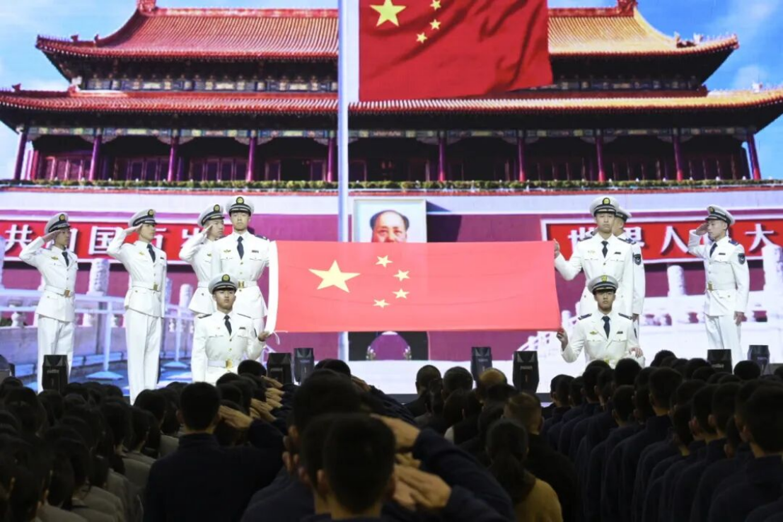 典礼在雄壮激昂的国歌声中拉开帷幕。全体师生肃立致敬,满怀赤诚,凝聚起奋进新征程的青春力量。